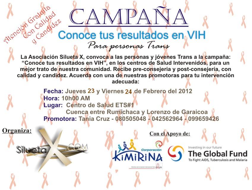 Silueta X Association, invites young people and the campaign Trans: ”Know your HIV results,” Health centers intervene and better treatment of our community. Getpre-counseling and post-counseling, quality and candor. According to one of ourdevelopers for your appropriate intervention: