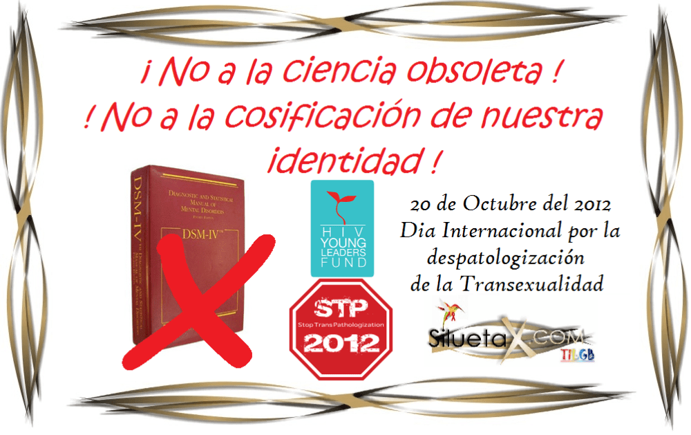 En el Marco internacional por la despatologización de la transexualidad, de los Manuales DSM-IV y otros manuales utilizados por la OMS, la Asociación Silueta X convoca a las autoridades a manifestar su pronunciamiento formal para la exclusión de la «Disforia de Género» de los mismos.