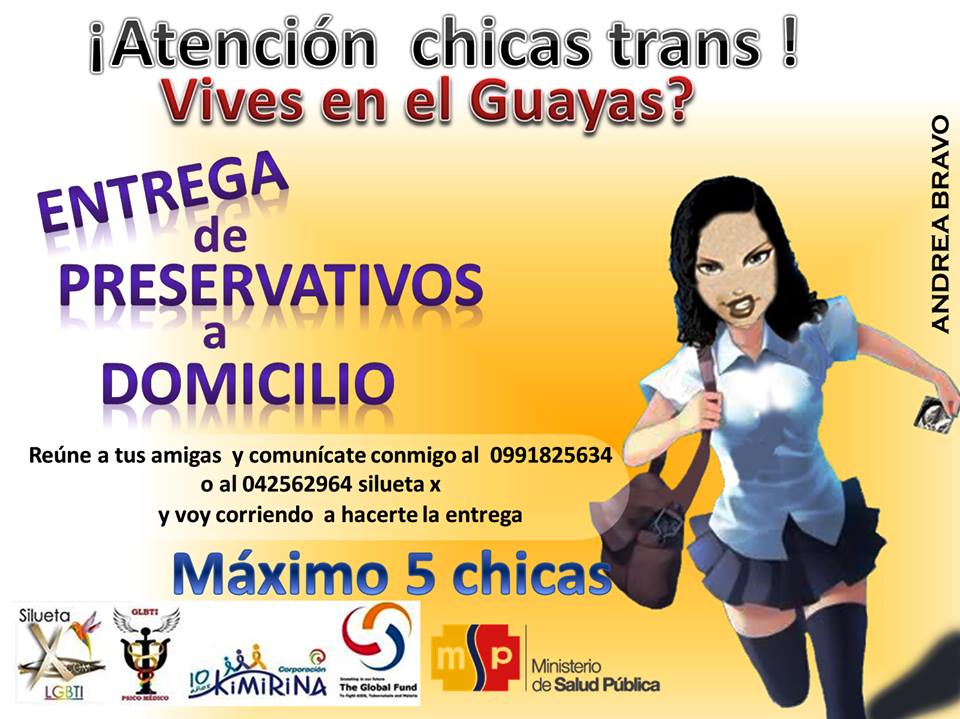 Se hará entrega de preservativos a domicilio: Reúne a tus amigas y comunícate con nosotras al : 0991825634 o al 042562964 Silueta X e iremos hacerte la entrega.