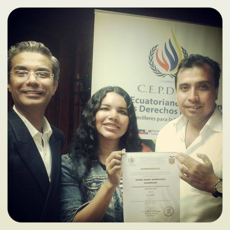 Appointment of Standing Committee Ecuadorian human rights as an representative National E international the population GLBTI of CEPDHU Miss Diane Rodriguez Zambrano Silueta X Association President.
