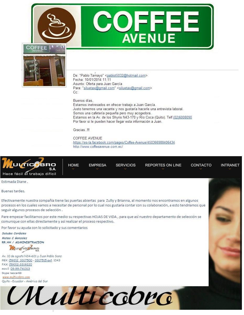 Two companies in an act of solidarity want to hire transgender discrimination in sweet and coffee . The coffee company Coffee Avenue and Multicobros SA : both of Quito, have offered working places Zully and Brianna , having lost their jobs, according to them, for being dressed as a woman , and finalizing his contract with Sweet And Coffee.
