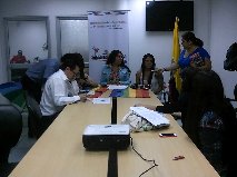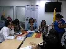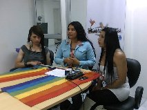 Press Conference. Silueta X Association, Episcopal and Anglican Church GLBTI Observatory Ecuador, supporting the case dismissed Briana Zully and according them for being dressed as a woman for the year end party company which worked: Sweet and Coffee.