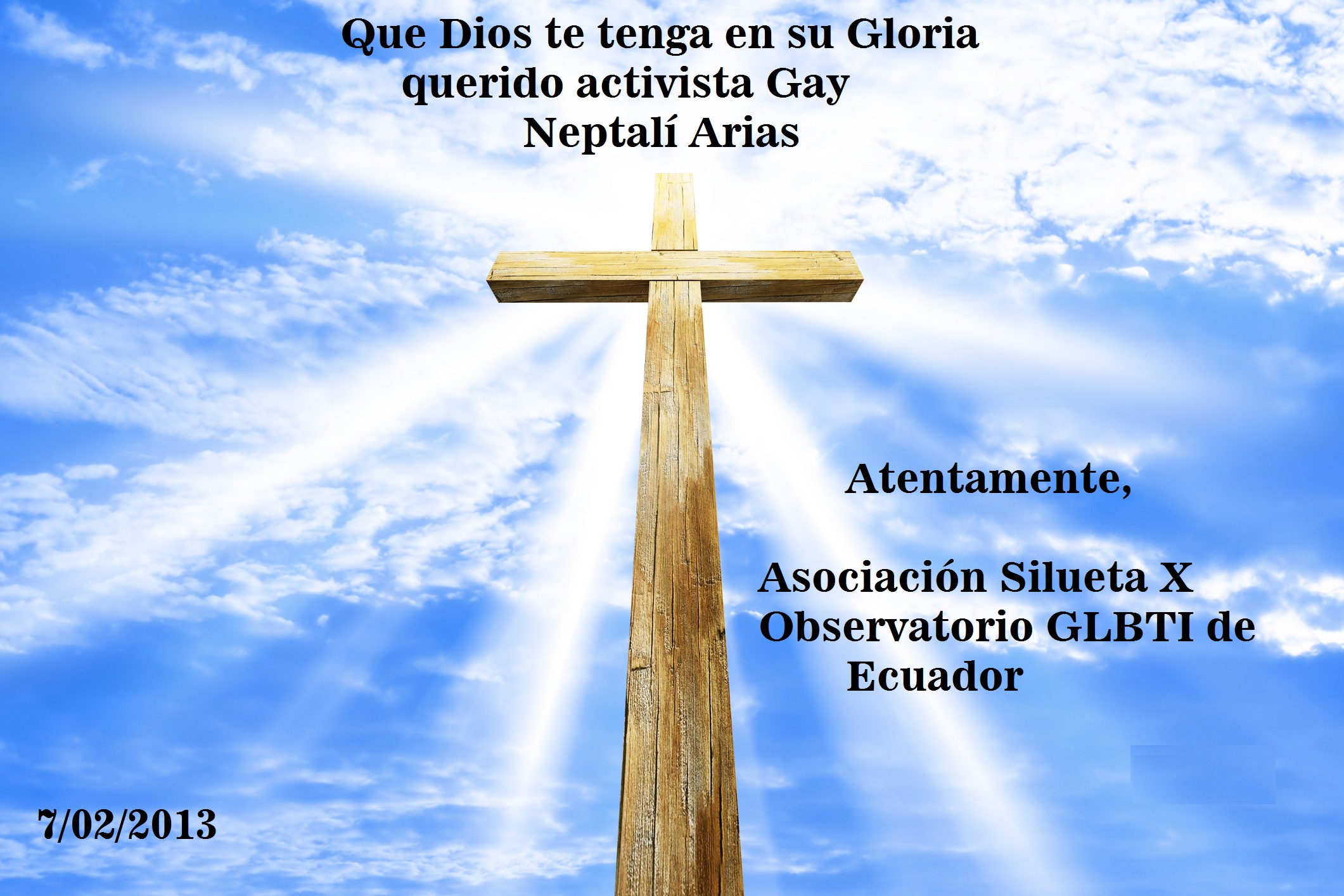 From Silueta X Association we mean that it recalled as one of the characters who contributed to the development of GLBTI activism in Ecuador , which continues its course thanks to the seeds sown in the past he and other collective sexual diversity , who left to join us too.