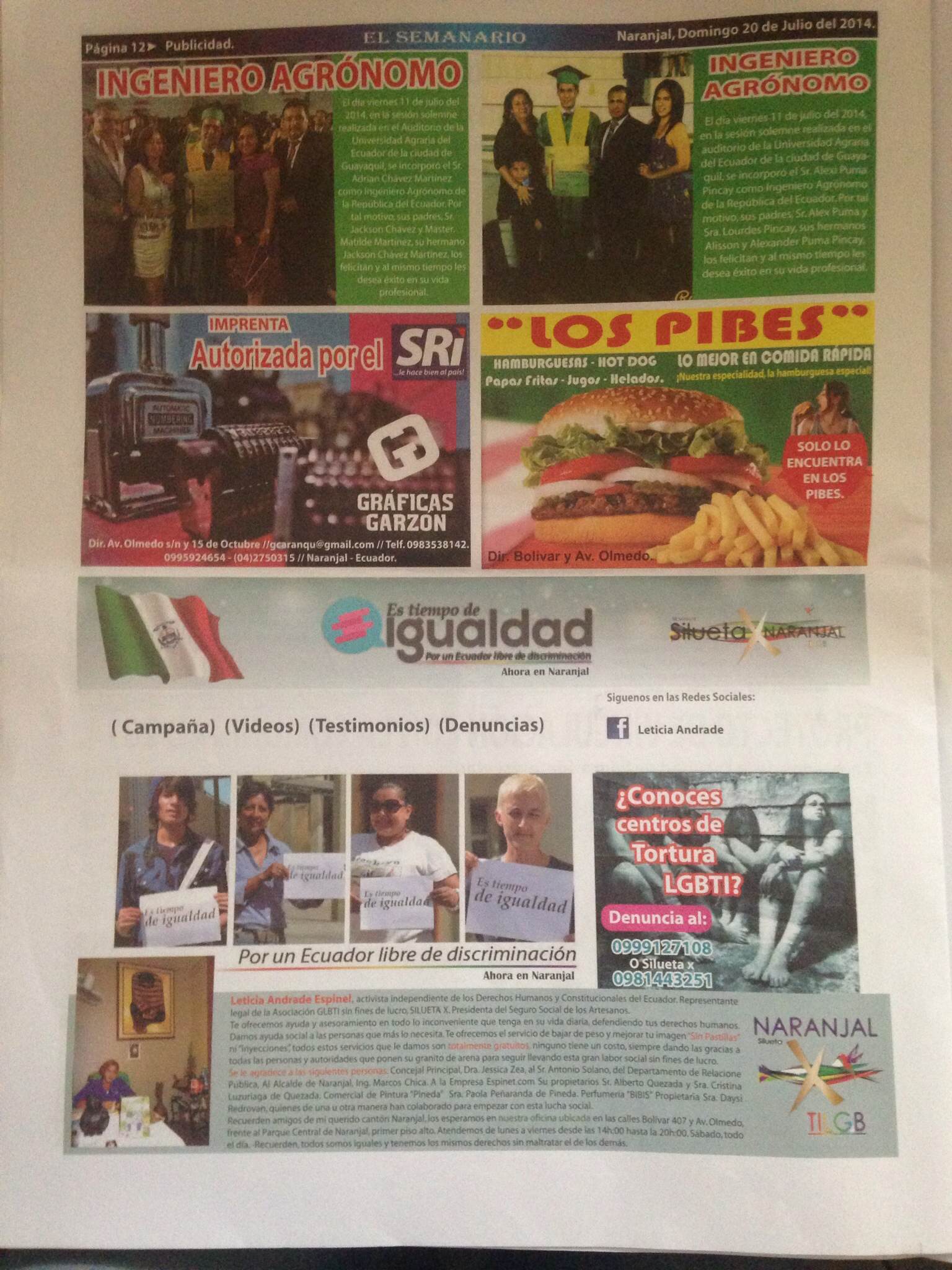 Remember my dear friends canton Orangery, we wait at our office located at 407 Bolivar Street and Aw. Olmedo, opposite the Central Park Orangery, first upstairs. We are open Monday to Friday from 14h00 to 20h00 Saturday all day – remember, we are all equal and have the same rights without harming the others.