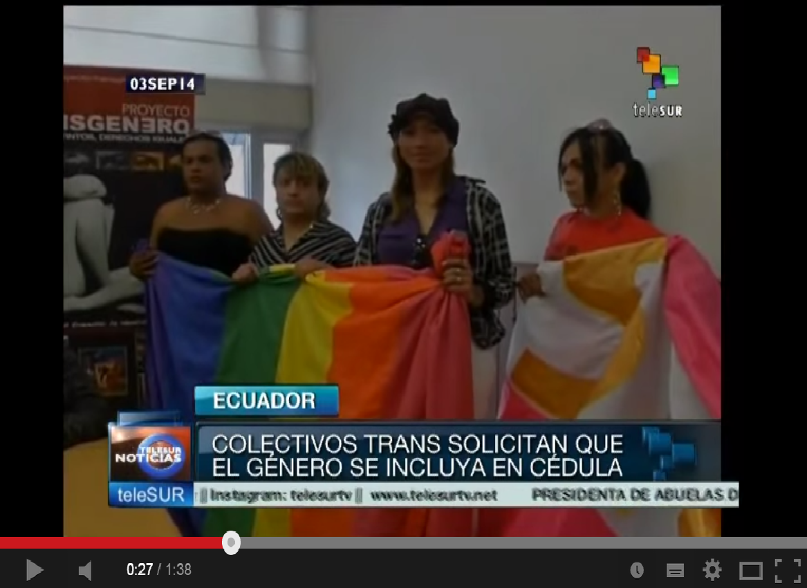 Transgender groups in Ecuador requested that gender identity card and not sex as it now appears is included.