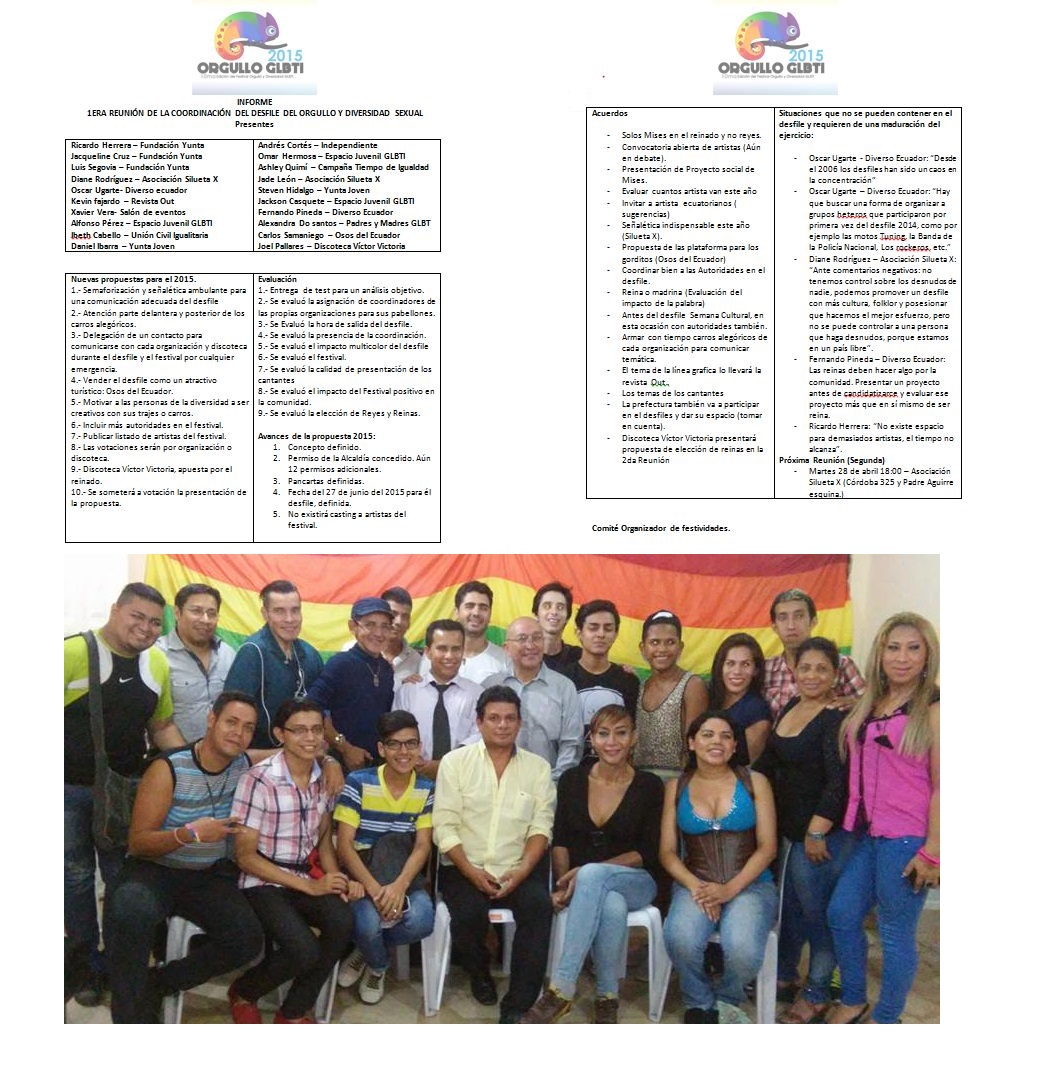 – Oscar Ugarte – Miscellaneous Ecuador: «We must find a way to organize heteros groups that participated for the first time the parade 2014, such as Tuning motorcycles, the Band of the National Police, rockers, etc.»