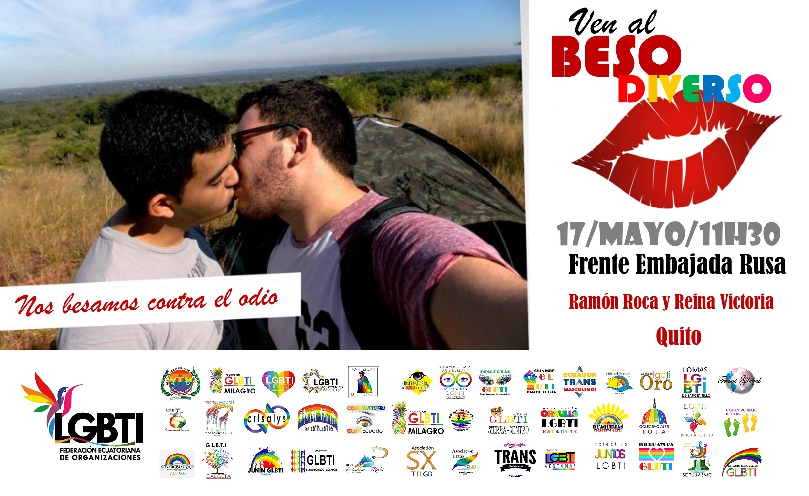 El “Beso diverso” en Quito se realizará frente a la embajada Rusa, en las avenidas Ramón Roca y Reina Victoria 11h30. Mayor información al: 0985875025