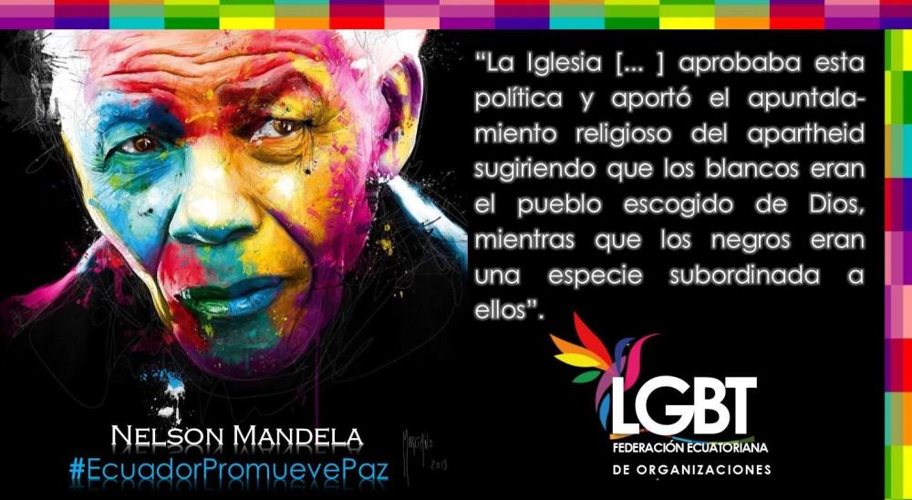 ” La Iglesia […] aprobaba esta política y aportó el apuntalamiento religioso del apartheid sugiriendo que los blancos eran de Dios mientras que los negros eran una especie subordinadas a ellos”.