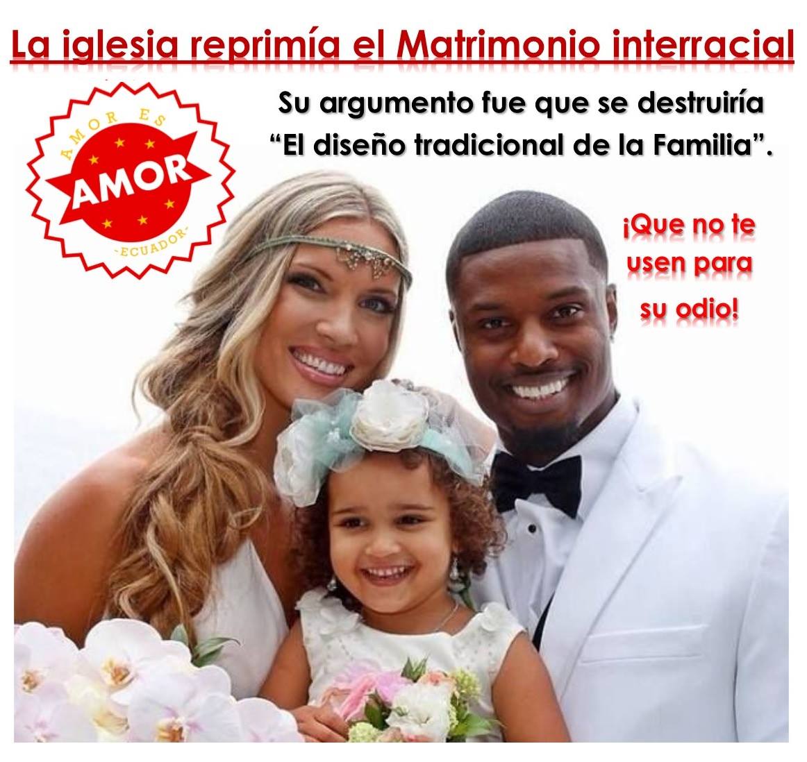 La iglesia reprimió el Matrimonio interracial. Su argumento fue que «destruiría el diseño tradicional de la familia» lo mismo que #ConMisHijosNoTeMetas. Que no te usen para su odio.