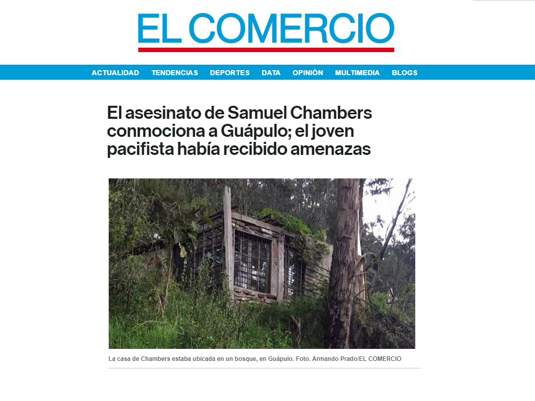 El asesinato de Samuel Chambers conmociona a Guápulo; el joven pacifista había recibido amenazas