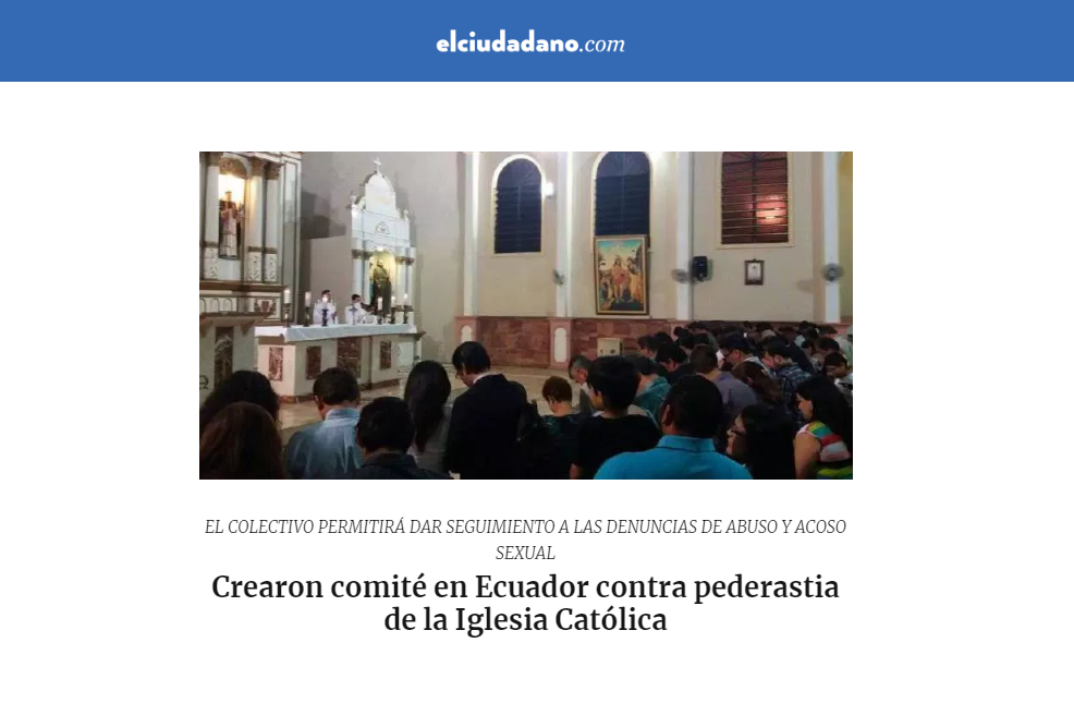 Diversos grupos sociales ecuatorianos crearon este viernes un Comité contra abuso y violación, hechos cometidos supuestamente por representantes de la iglesia Católica en ese país y que fueron develados por las denuncias hacia un sacerdote, quien presuntamente ejecutaba torturas que formaban parte de extraños rituales de fe.