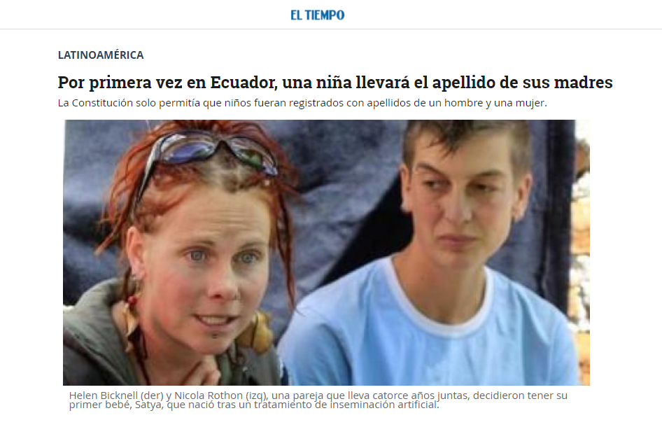 Fuente: http://m.eltiempo.com/mundo/latinoamerica/pareja-de-madres-en-ecuador-ganan-batalla-legal-para-registrar-a-su-hija-con-sus-dos-apellidos-224004