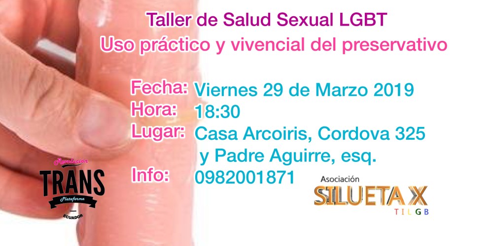 Taller de salud sexual LGBT, Viernes 29 de Marzo 2019, 18:30, Casa Arcoiris, Cordova 325 y Padre Aguirre, esq. 0982001871