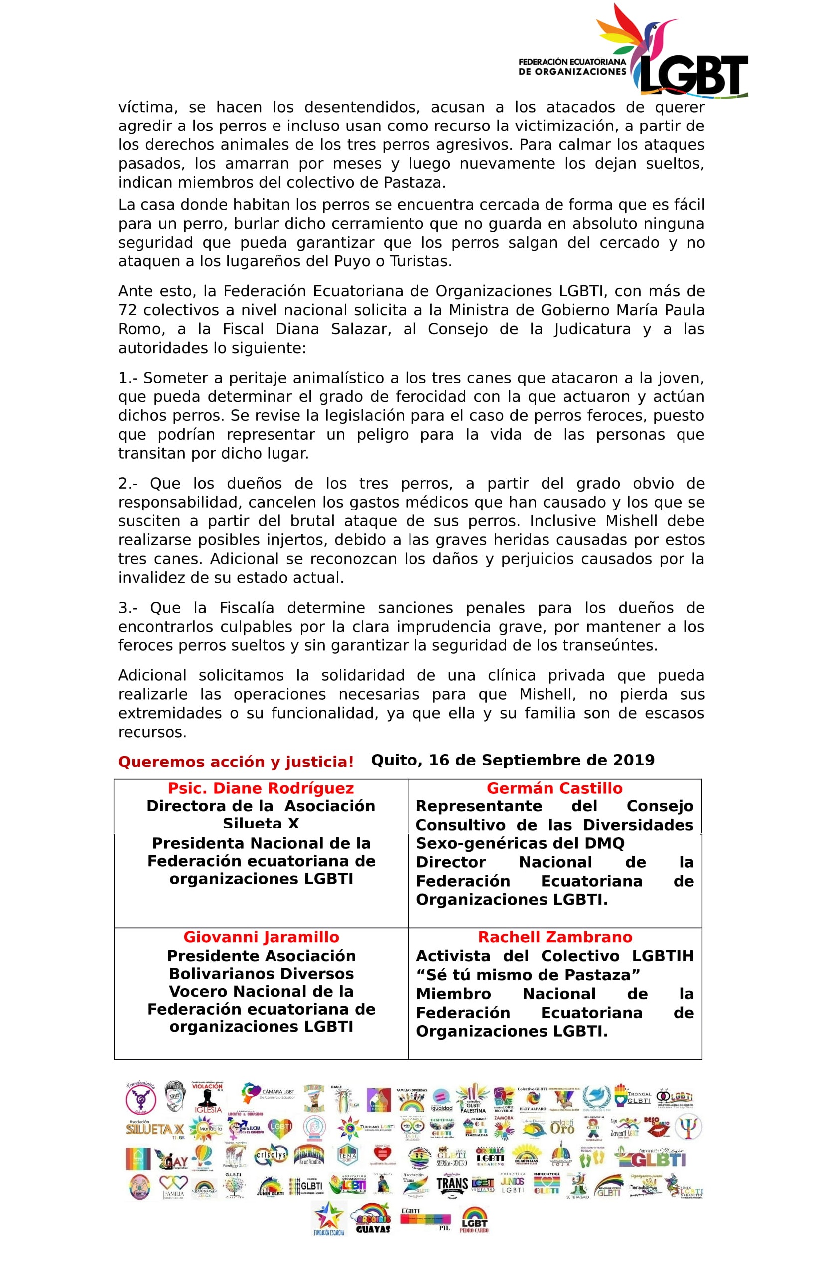 Boletín de Prensa – Tres perros sueltos atacan brutalmente a una joven LGBT al punto de comerse sus extremidades – Federación Ecuatoriana de Organizaciones LGBTI-2