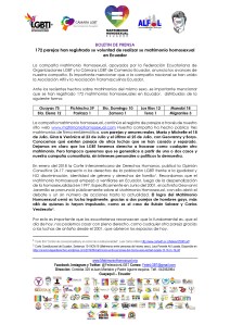 Boletín de Prensa – 172 parejas han registrado su voluntad de realizar su matrimonio homosexual en Ecuador 1
