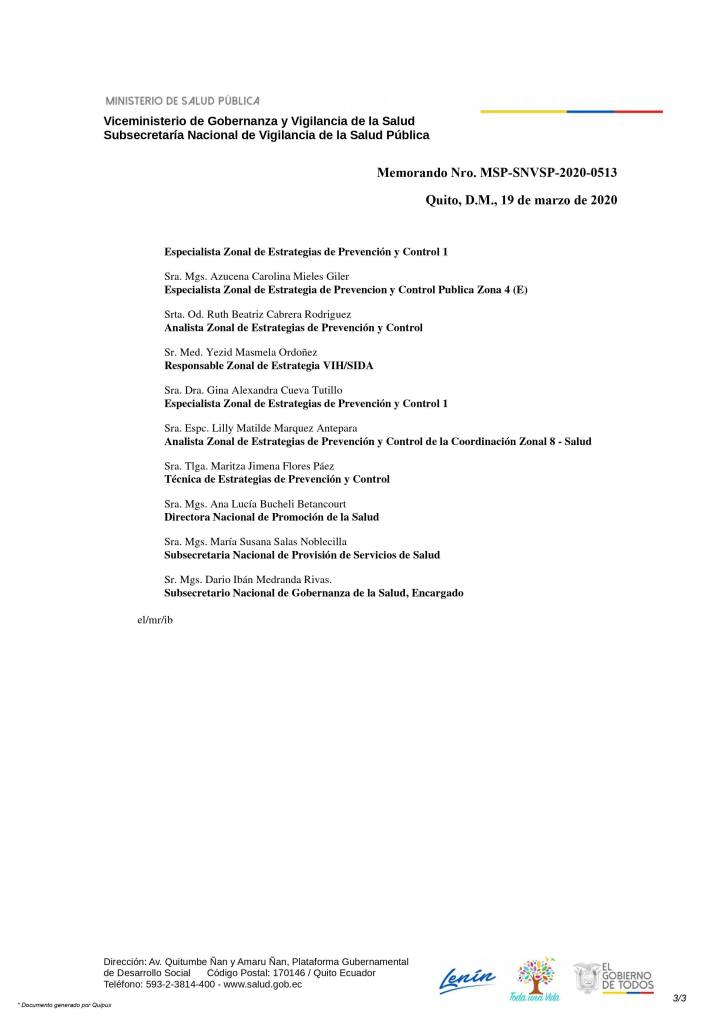 Por medio de la presente hago llegar un cordial saludo, a la vez por este medio se procede a dar los siguientes lineamientos con respecto a la atencion integral de pacientes que viven con VIH, durante el tiempo que dure la Emergencia por el COVID-19 decretado por el gobierno nacional el 11 de marzo del 2020: