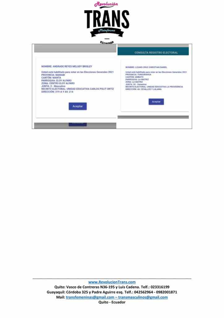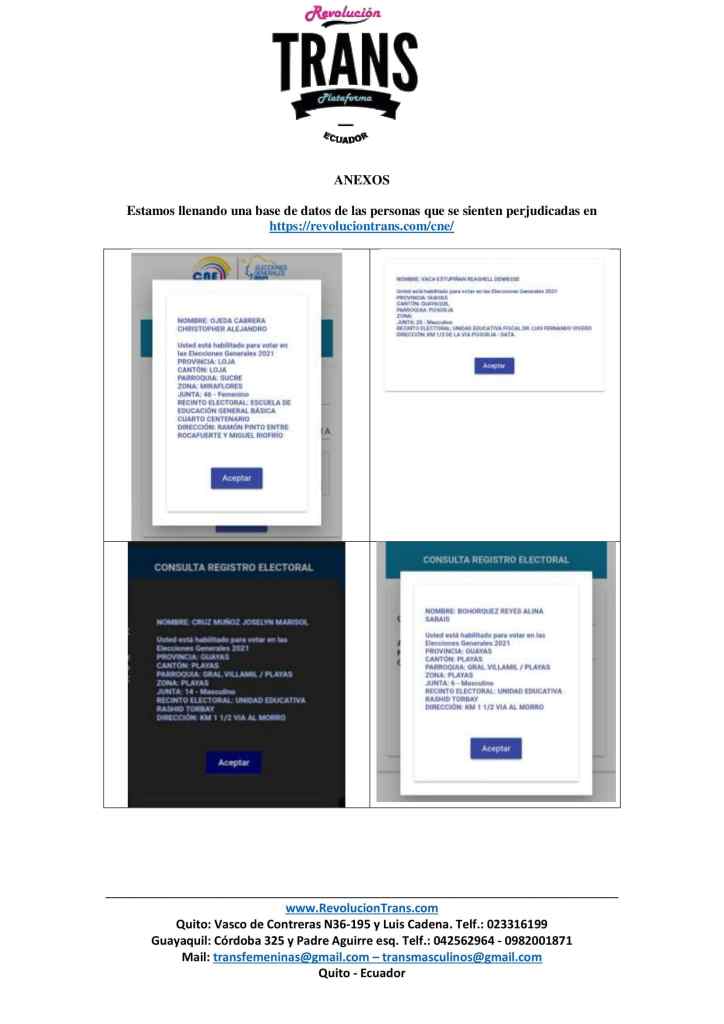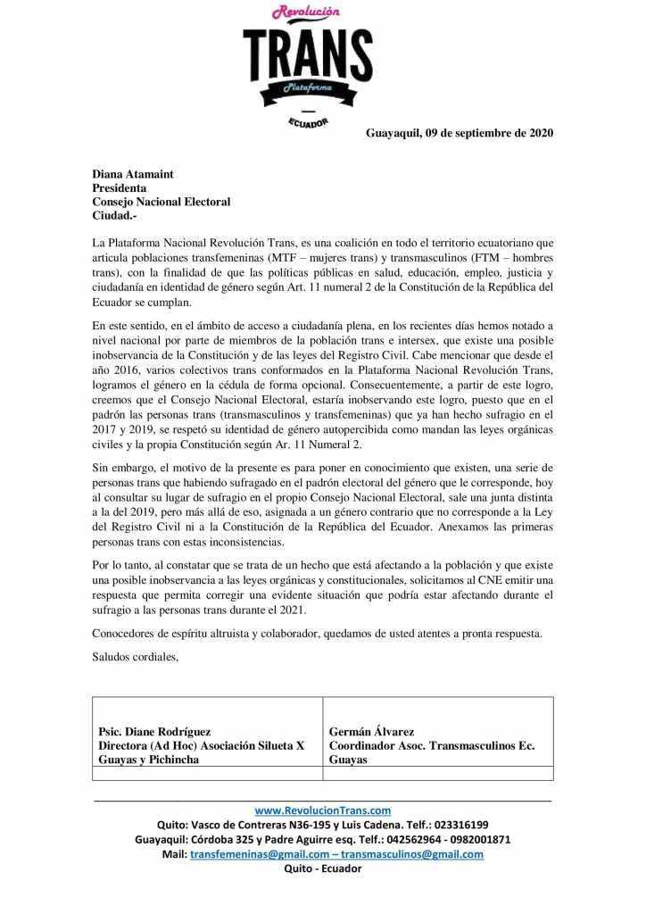 Carta a la Presidenta del CNE Diana Atamaint, sobre posible vulneración a la identidad de género de personas trans.