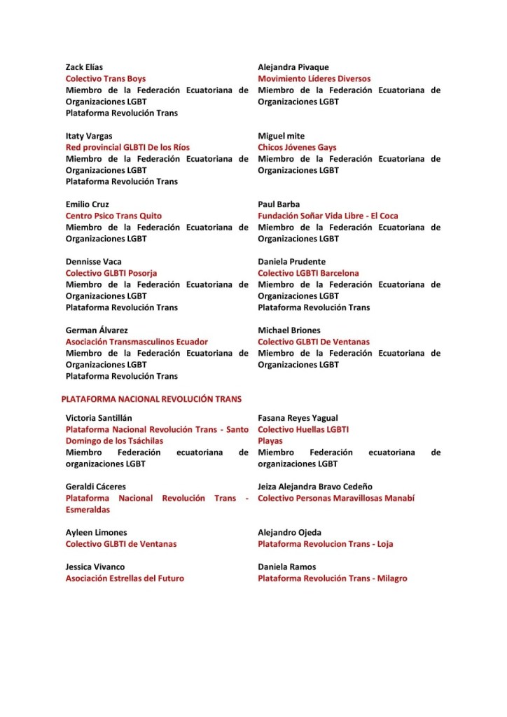 Plataforma Nacional Revolución Trans – Esmeraldas