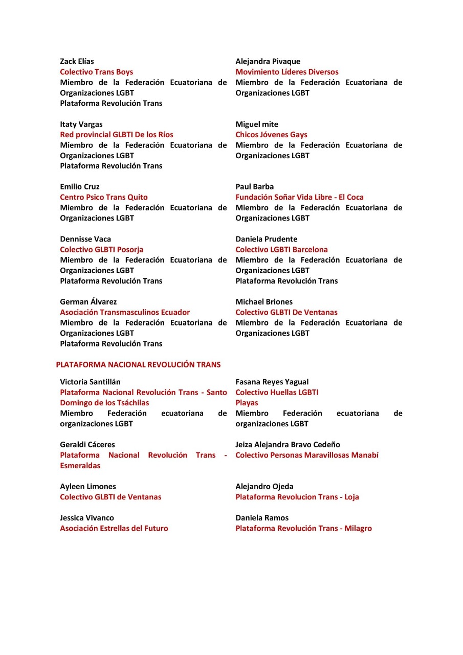 Plataforma Nacional Revolución Trans – Esmeraldas