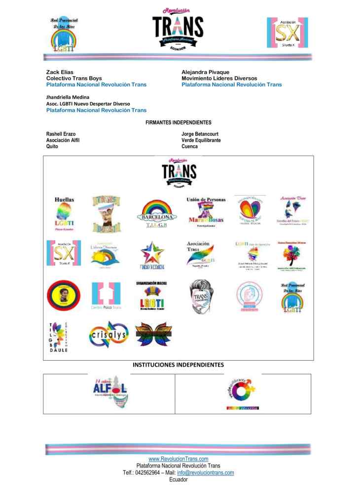 | Jhandriella Medina Asoc. LGBTI Nuevo Despertar Diverso Plataforma Nacional Revolución Trans |