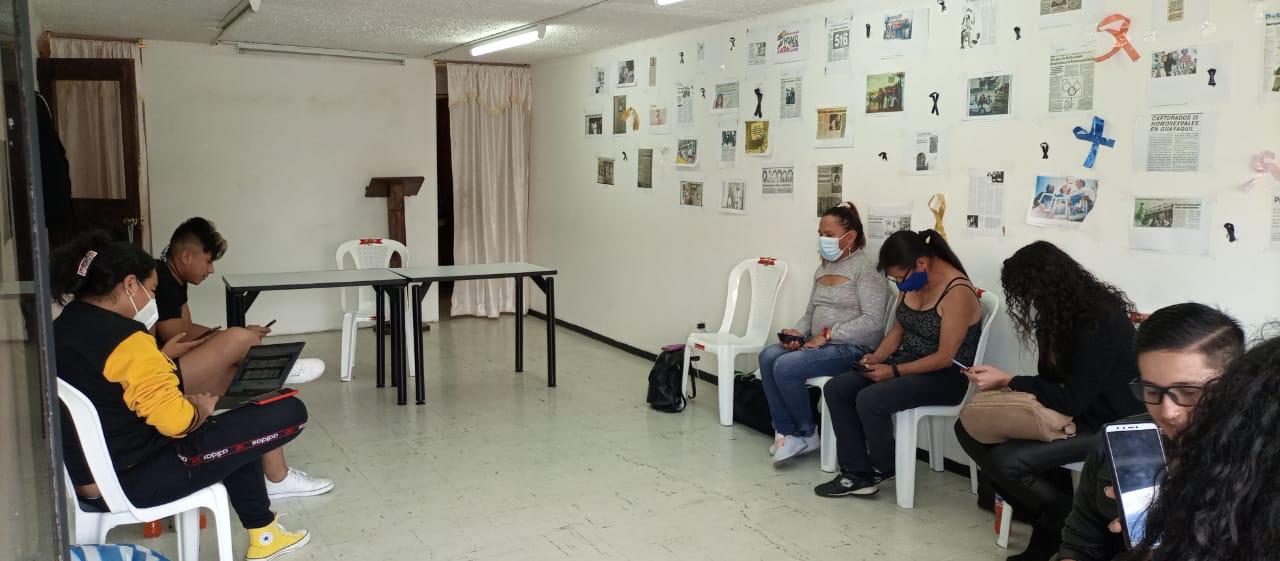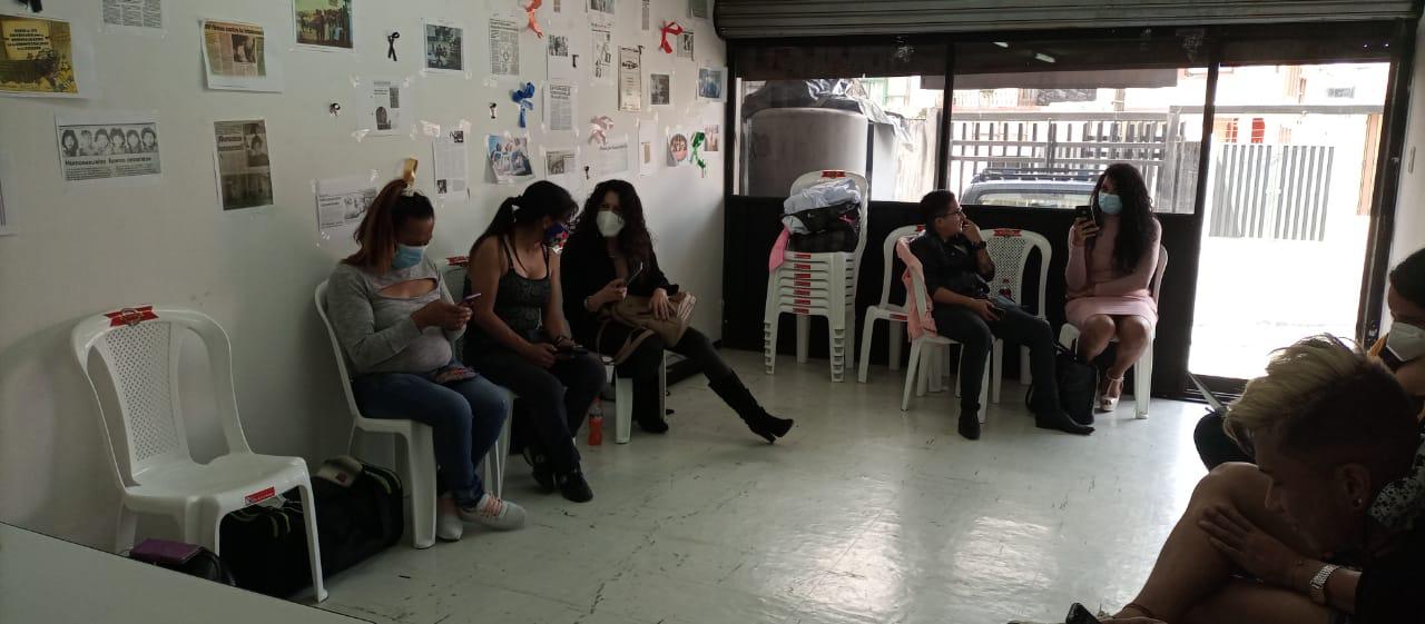 La sala de usos múltiples del Centro Psico Trans de Quito, es un área que se ha convertido en amigable y de seguridad para las personas sexo-genero diferentes de la capital. Aquí, esperábamos un almuerzo comunitario después de una actividad en la Carita de Dios. El Centro Psico Trans ha activado todos los mecanismos de bioseguridad ante la pandemia del COVID19 y así, poder seguir atendiendo.