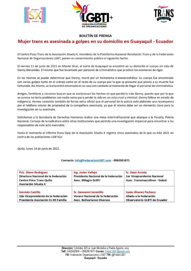 Contacto: info@FederacionLGBT.com – 0982001871