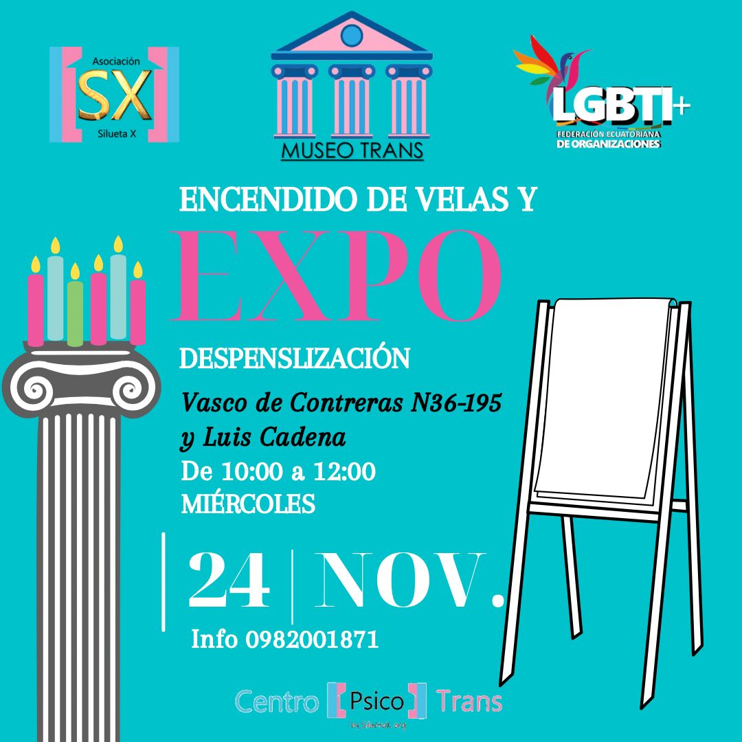Desde el año 1997 en el Ecuador se tiene como fecha emblemática el 27 de noviembre. A lo largo de estos años, pero sobre todo desde el 2010, abordamos el enfoque de género desde una perspectiva trans, quienes hemos sido las protagonistas desde la despenalización y los derechos más visibles para la comunidad, en el país y en el mundo. Estas actividades del 27 de noviembre también coinciden con el día internacional de la memoria trans, conocido por la comunidad trans como el #NoviembreTrans. Desde el año 2020, varias organizaciones de distintas ciudades y provincias del Ecuador, se han venido movilizando para realizar una protesta desde la calle, a la que hemos denominado marcha trans. De igual manera hay organizaciones que vienen trabajando paralelamente en estas actividades, con causas y problemáticas comunes. Este 2021, tenemos tres objetivos para este mes del #OrgulloTrans (Trans Pride Ecuador): conmemorar 24 años de despenalización, conmemorar los 5 años del día nacional de las diversidades y realizar una remembranza por los hasta ahora 13 asesinatos en contra de las poblaciones LGBTIQ+ de los cuales 9 son en contra de mujeres trans. Estos tres objetivos lo realizaremos con una exposición fotográfica y un altar a la memoria trans