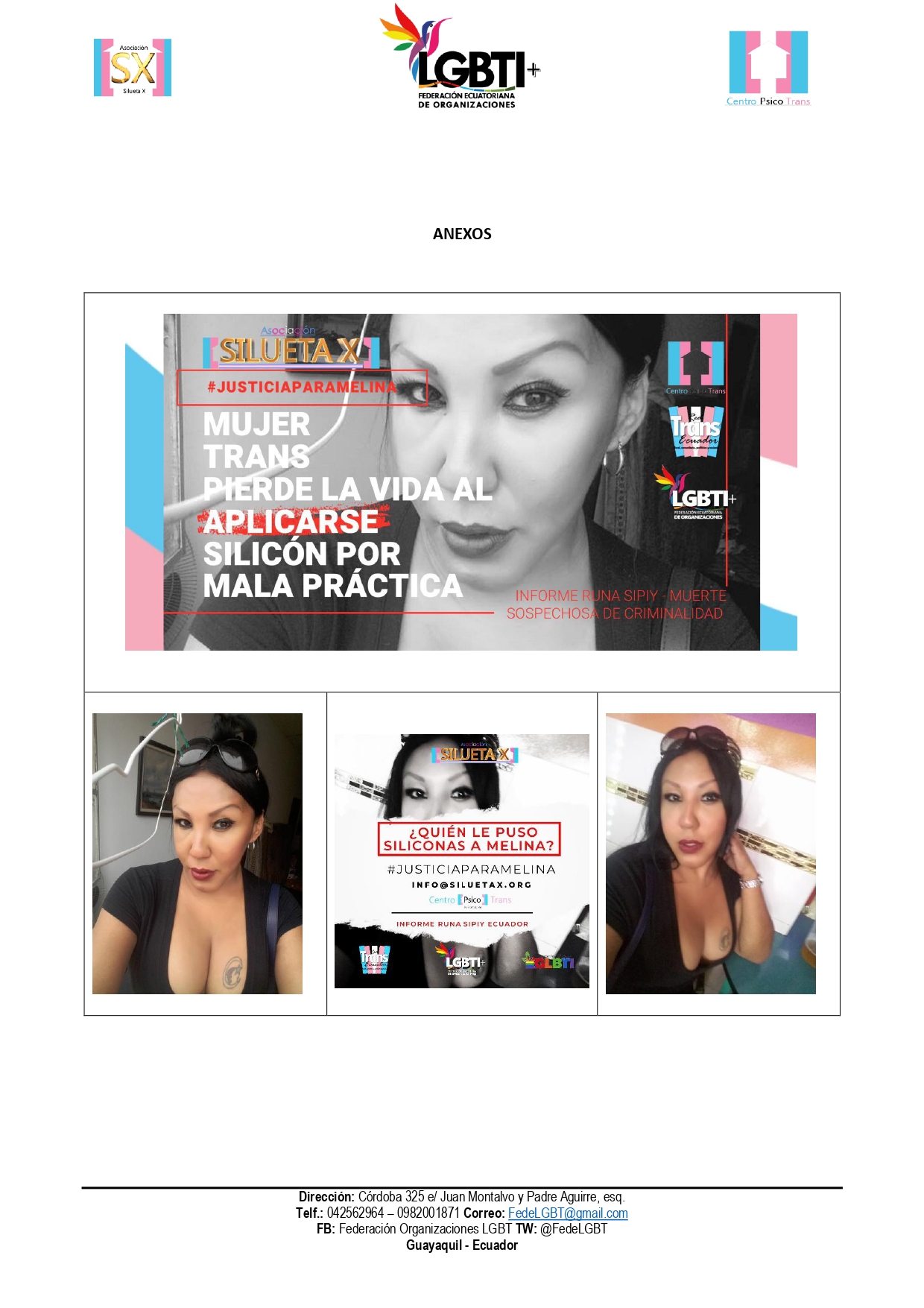 El Centro Psico Trans de Quito de la Asociación Silueta X, miembros de la Nueva Red Trans Ecuador (Rural Comunitaria Periférica y Nacional) y de la Federación Nacional de Organizaciones LGBT, ponen en conocimiento público el siguiente hecho: