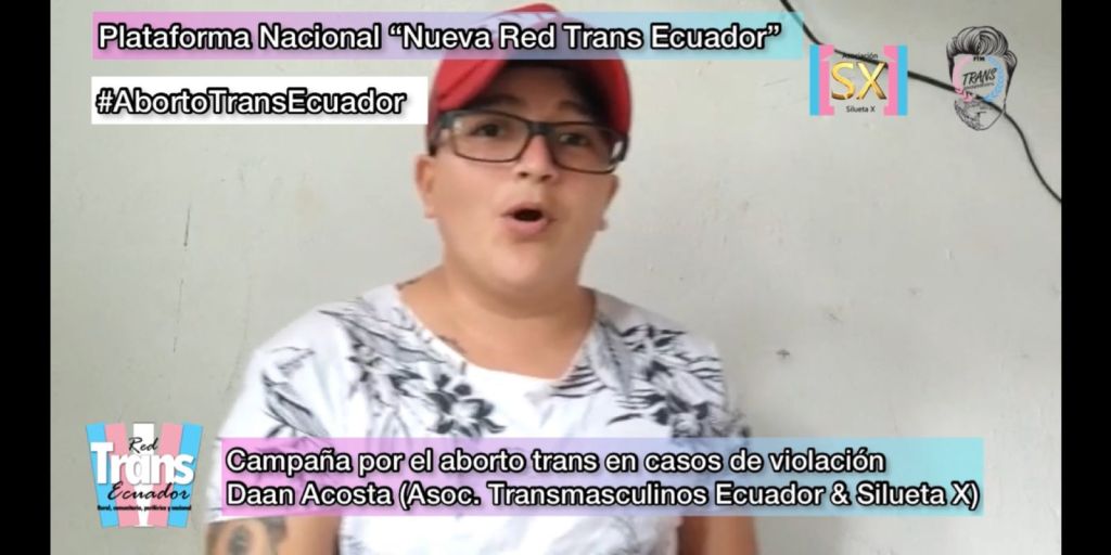 La Plataforma nacional «Nueva Red Trans Ecuador», coordinada por la Asociación Silueta X y co-coordinada por la Asociación Transmasculinos Ecuador, inició este 10 de enero de 2022, la Campaña Nacional de cuerpos gestantes por el aborto trans en Ecuador. Esto a raíz de la discusión de la nueva ley de aborto por violación que se debate en la Asamblea Nacional.