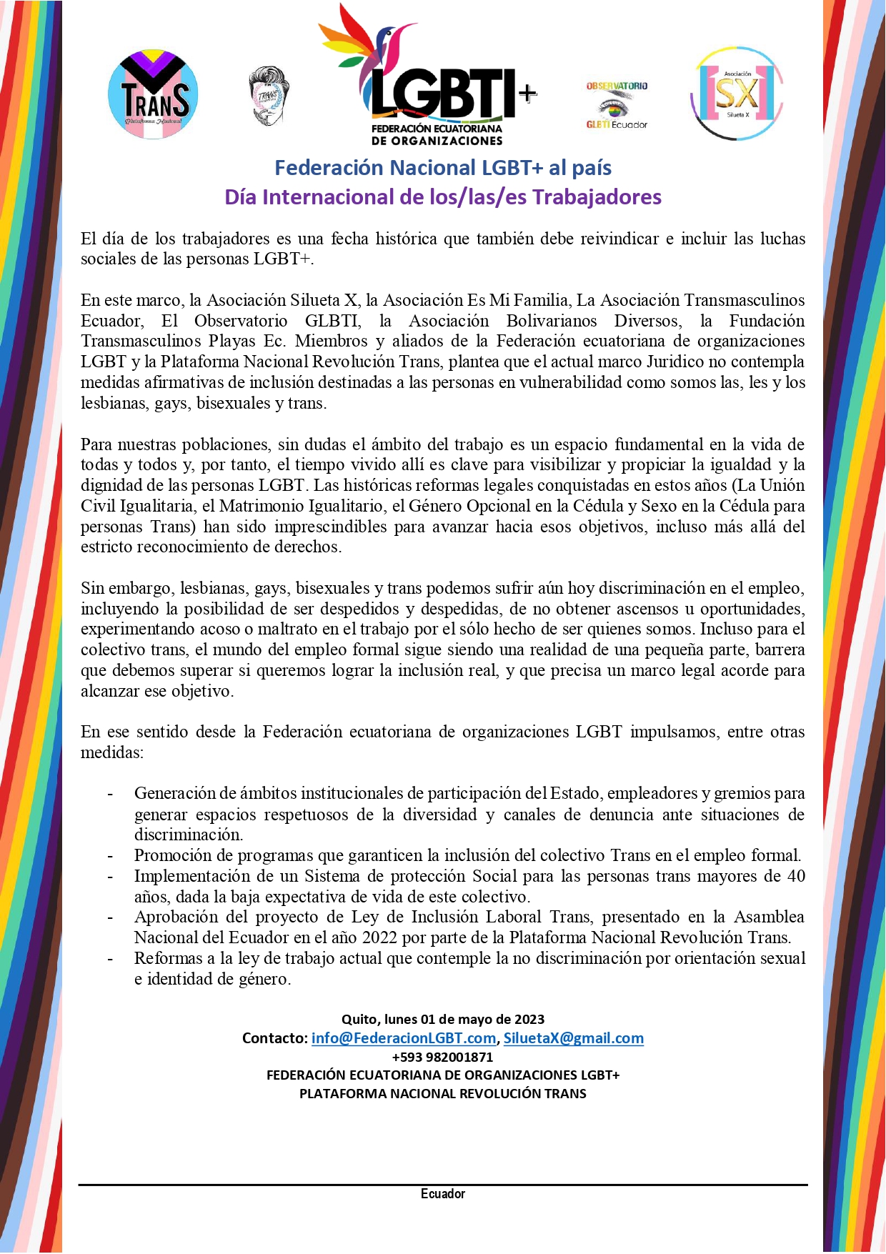 En ese sentido desde la Federación ecuatoriana de organizaciones LGBT impulsamos, entre otras medidas: