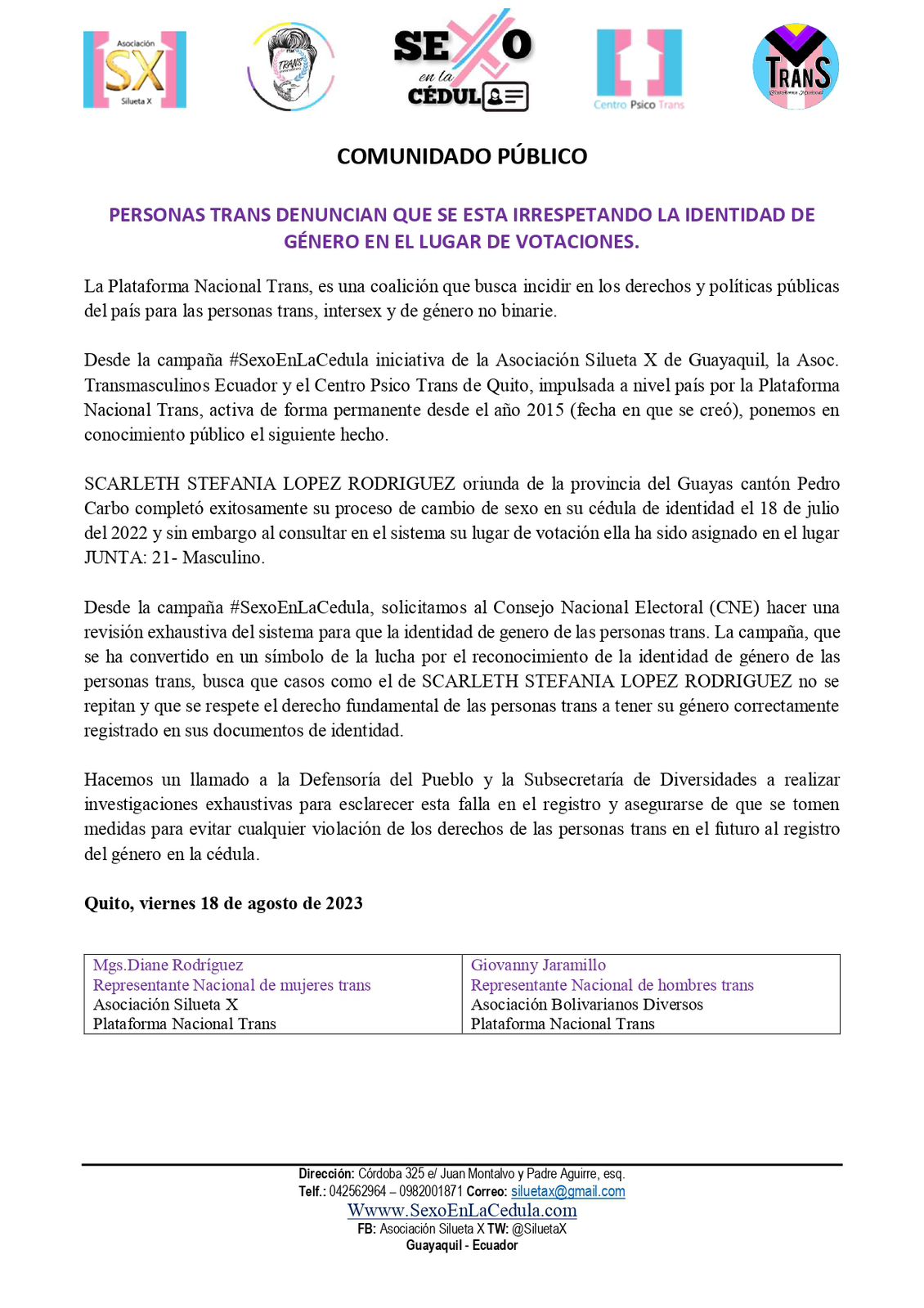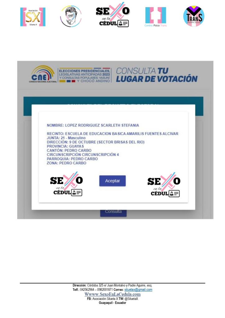 Desde la campaña #SexoEnLaCedula iniciativa de la Asociación Silueta X de Guayaquil, la Asoc.