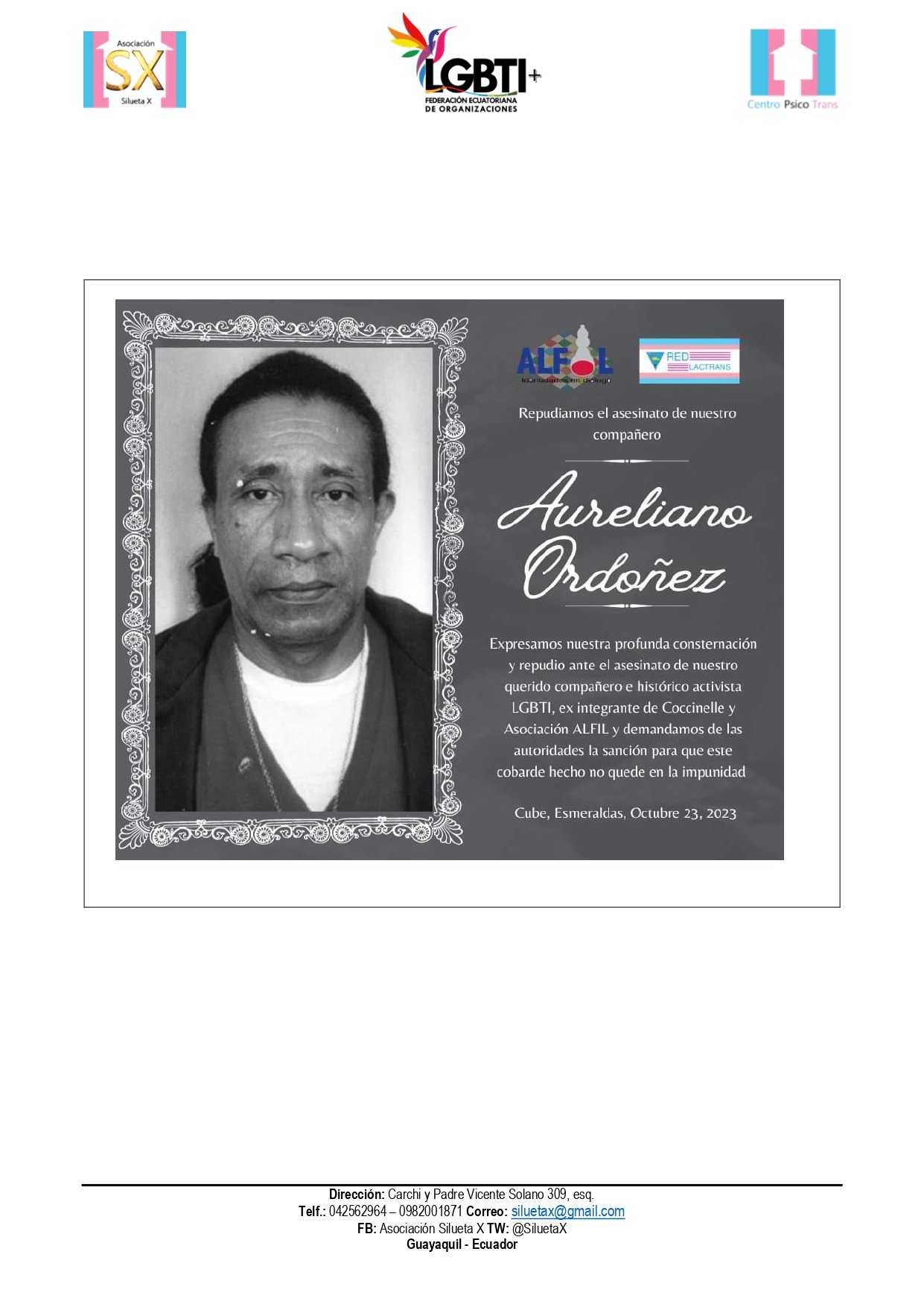 manos de la justicia. Además, nos preocupa la posibilidad que la homofobia haya desempeñado un papel crucial en la vida de nuestro compañero Aurelio. El mismo compartió sus experiencias de