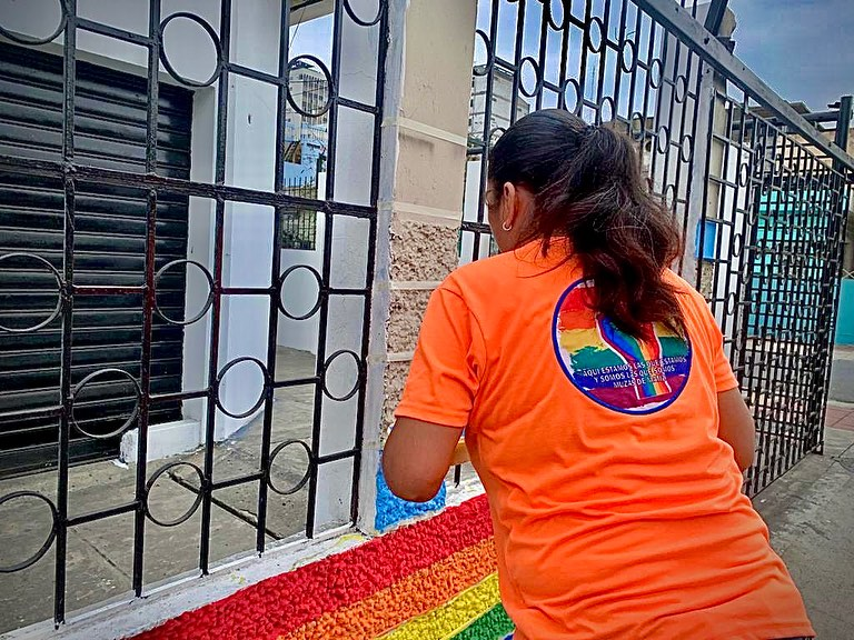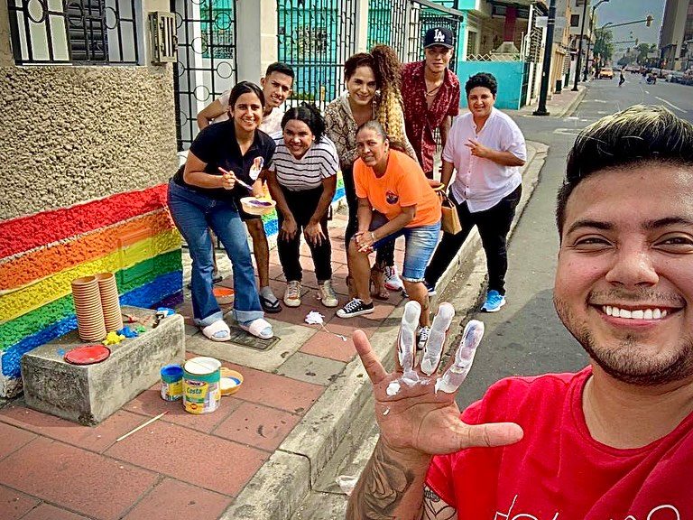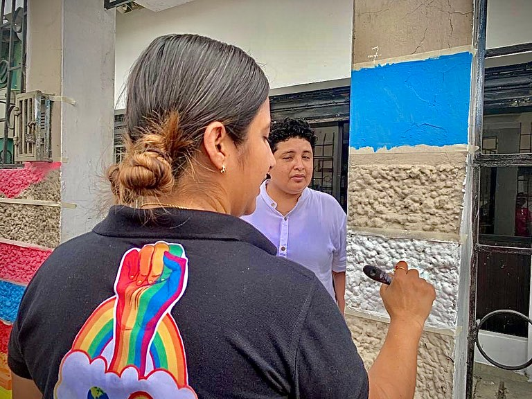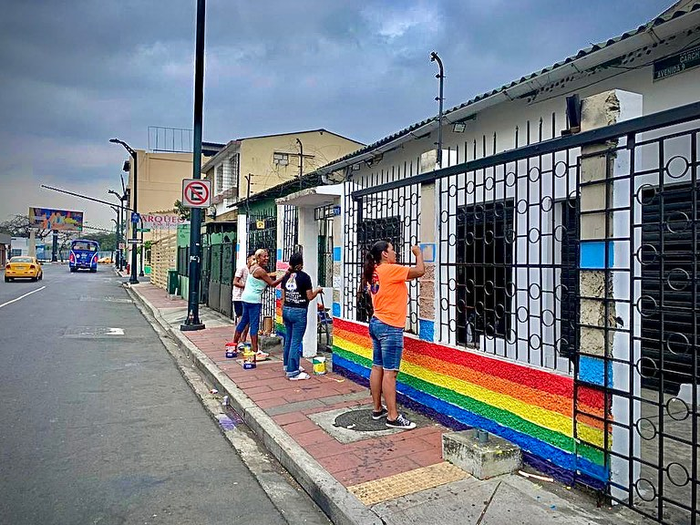 Agradecimientos en esta primera pintada a Muzas de Matiz, a la Reina de Durán, a la Vireina de la Comunidad y su pareja, Jonathan Alban, Alexis y su pareja, Zack Elias, Diane Rodríguez. Agradecimientos a quienes donaron la pintura.