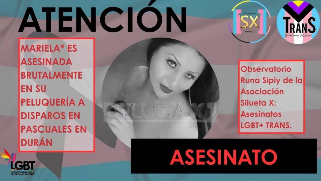 Asociación Silueta X, miembros de la Plataforma Nacional Trans Ecuador (CoaliTrans), el Observatorio GLBTI, y la Federación Nacional de Organizaciones LGBT, ponen en conocimiento público el siguiente hecho.